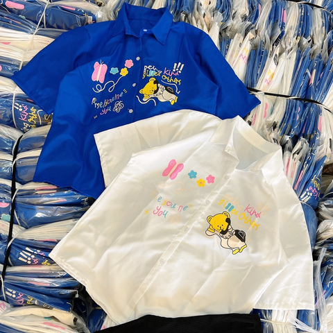 Phong cách năng động: Áo sơ mi "Being Kind" + Quần Jeans ống rộng + Giày Sneaker trắng.