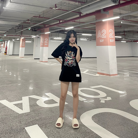 Cổ bẻ. Họa tiết viền tay áo. Áo: ngắn tay. Có in chữ BALENCIAGA